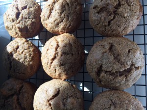 Pre-heat oven to 325 degrees F and either line or grease your muffin tins.