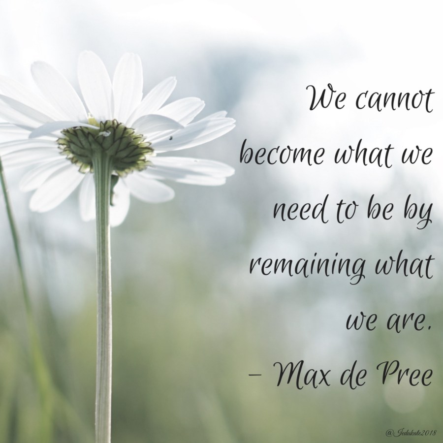 “We can not become what we need to be by remaining what we are.” Max de Pree