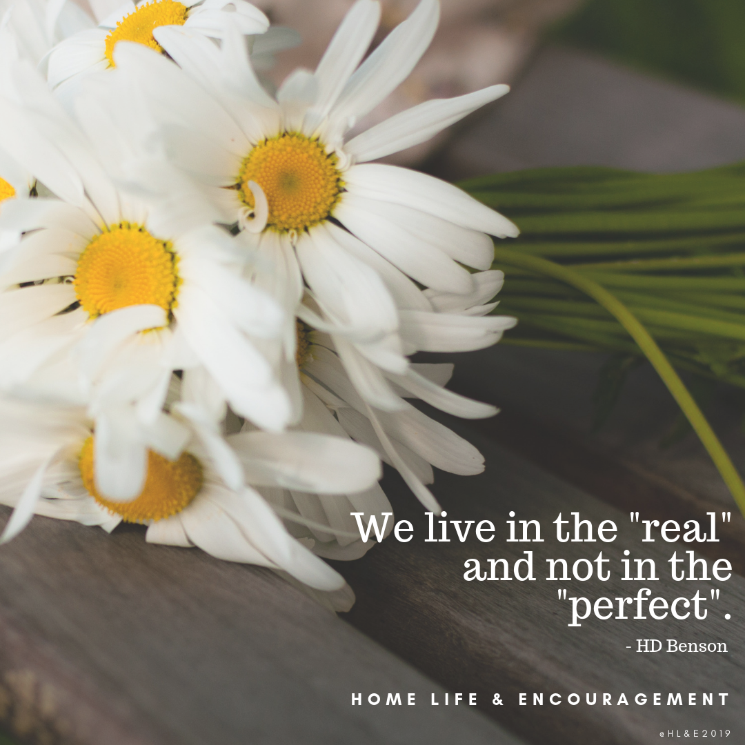 We live in the “real” and not in the “perfect”. Cling to your real and find peace in the difficult days while rejoicing during the good ones because they are there to rejuvenate and refresh you while preparing you for the difficult days when they arrive.