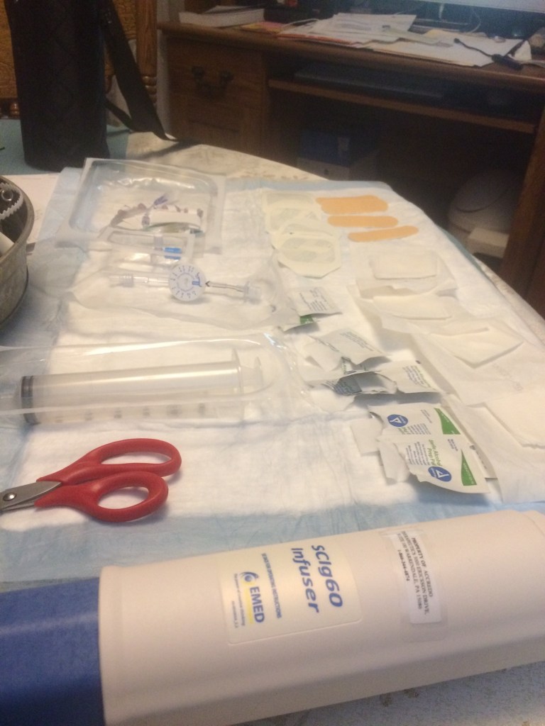 She is amazingly strong and courageous. Every time she does this, she amazes me at the strength she has to sit there and inject 4 separate needles into her legs and then sit there for an hour or more while she waits for the infusion to finish.