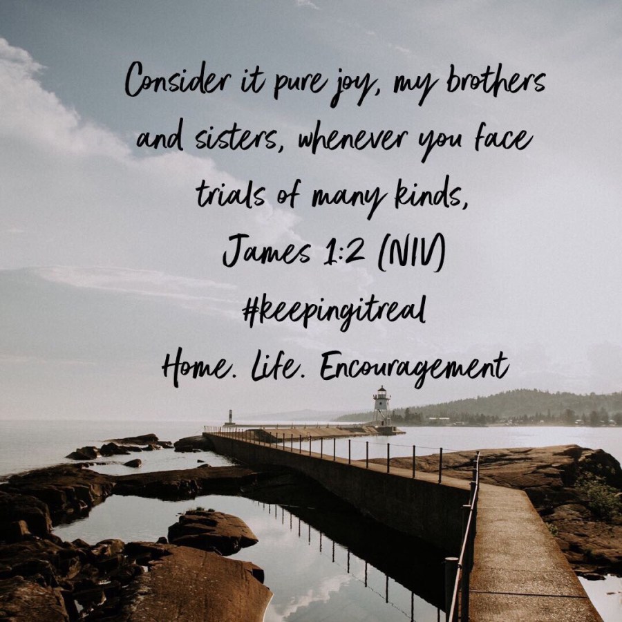 “Consider it pure joy, my brothers and sisters, whenever you face trials of many kinds…” James 1:2 (NIV)