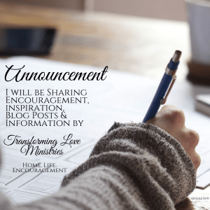 I will be sharing more and more inspiring and motivational blog posts, encouraging graphic images, and exciting events as they become available from my favorite women’s ministry, Transforming Love Ministries.